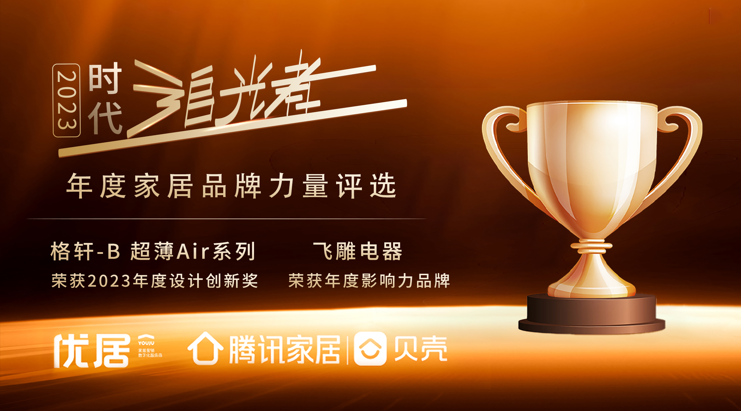 時代追光者∣2023年度家居品牌力量評選榜單公布 飛雕電器榮獲“年度影響力品牌獎”、“創(chuàng)新設(shè)計獎”!