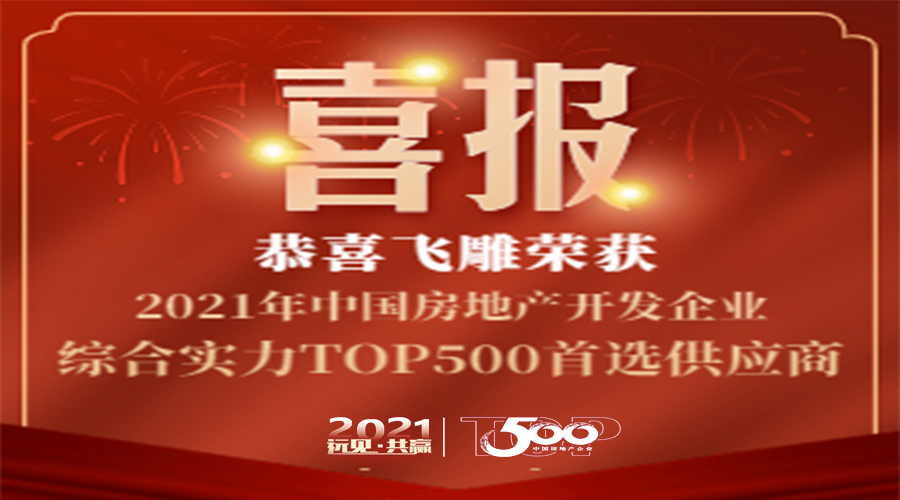祝賀:飛雕榮獲2021年中國房地產(chǎn)開發(fā)企業(yè)綜合實(shí)力TOP500 首選供應(yīng)商!