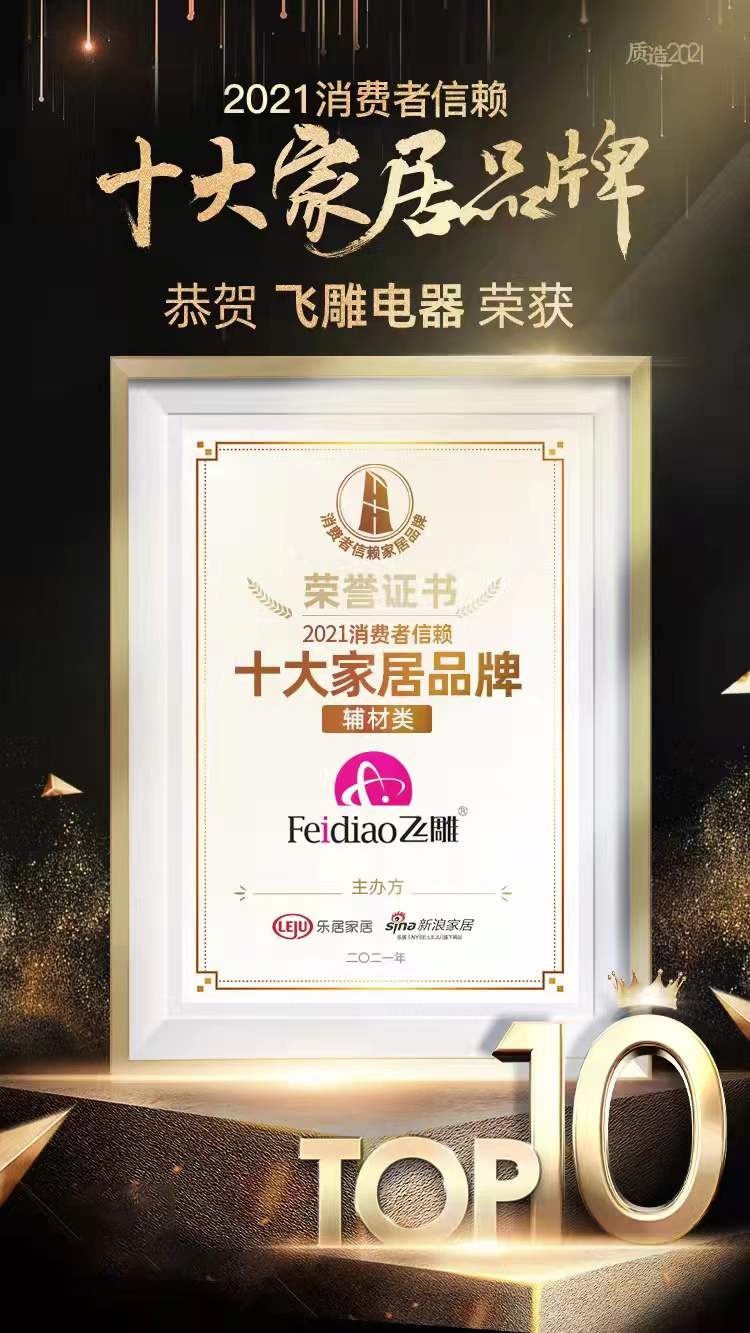 重磅!飛雕電器集團(tuán)斬獲“2021消費(fèi)者信賴十大家居品牌”稱號!