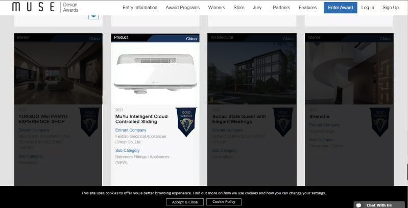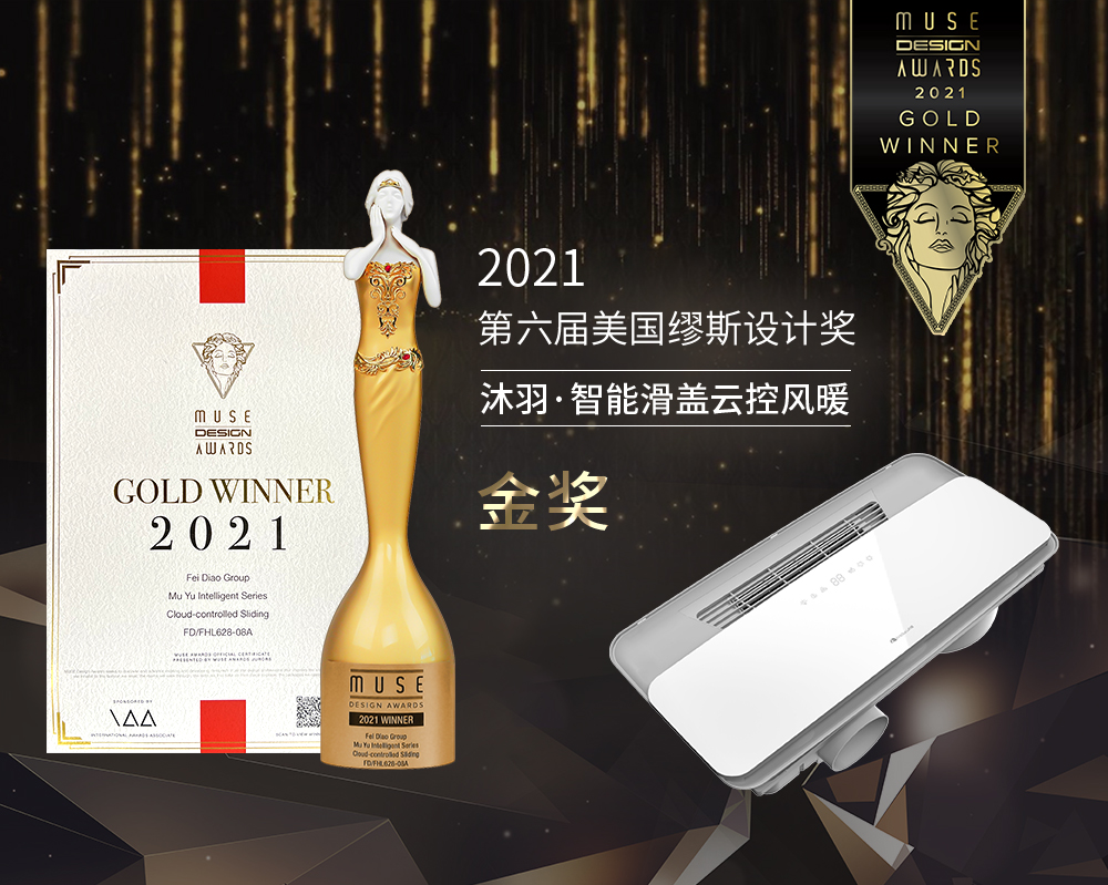 喜報(bào)|飛雕集團(tuán)沐羽·智能云控滑蓋風(fēng)暖浴霸榮膺2021年度國際性設(shè)計(jì)大獎(jiǎng)——繆斯設(shè)計(jì)金獎(jiǎng)!
