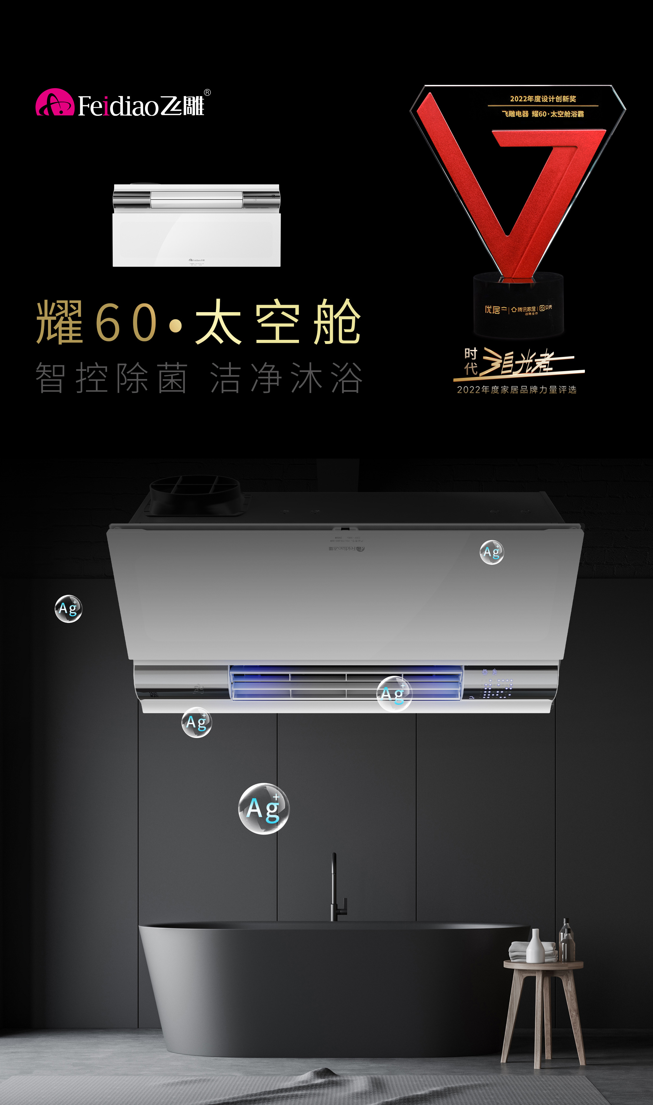 在本次評(píng)選中,飛雕耀60?太空艙浴霸,作為2022年新推出的智控除菌系列產(chǎn)品,憑借極具科技感的“膠囊”外觀設(shè)計(jì)以及智能智控系統(tǒng),成功斬獲“2022年度設(shè)計(jì)創(chuàng)新獎(jiǎng)”。