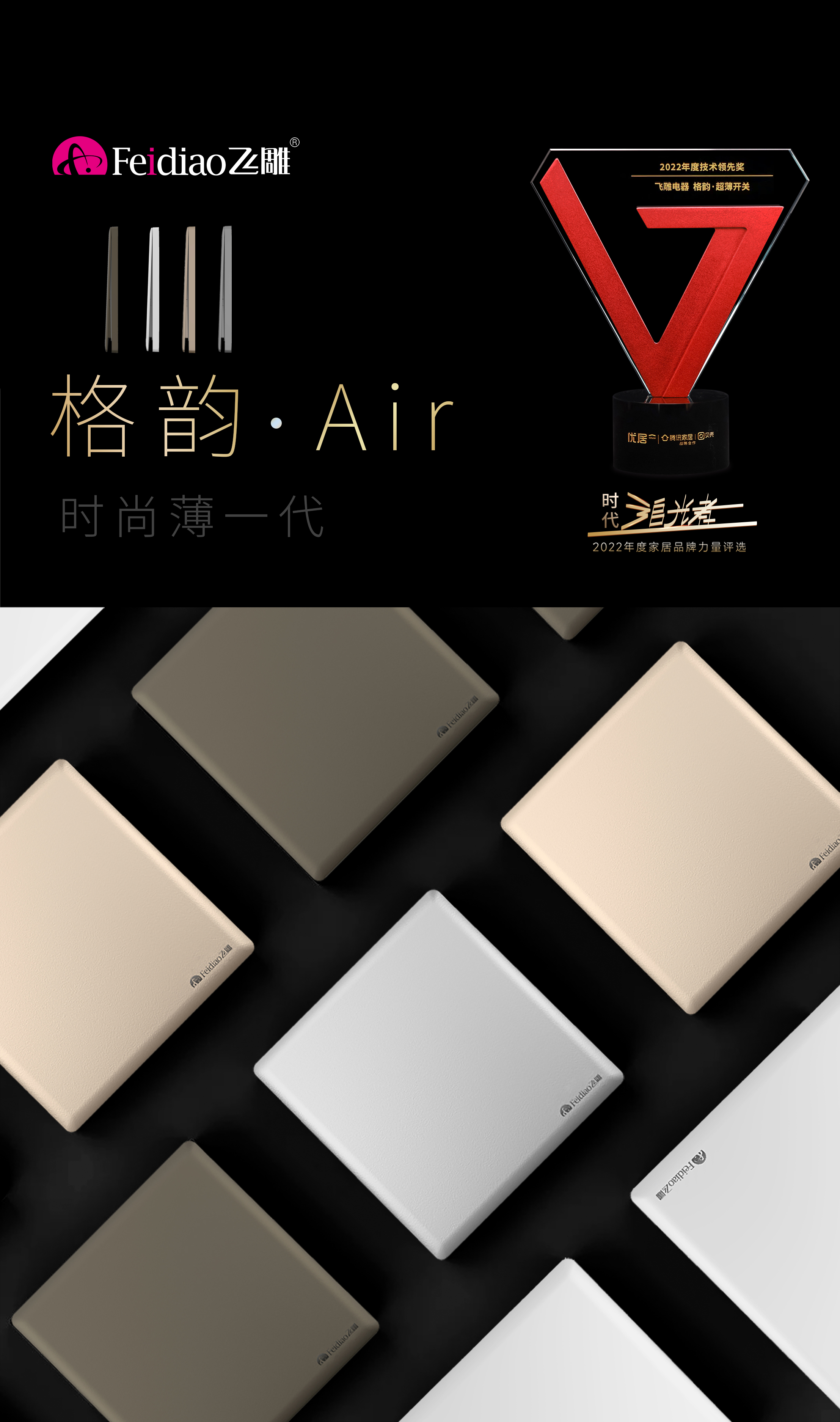 飛雕電器超薄開關(guān)-格韻?Air系列,憑借內(nèi)外兼修的品質(zhì)實(shí)力以及行業(yè)領(lǐng)先的技術(shù)優(yōu)勢(shì),榮獲“2022年度技術(shù)領(lǐng)先獎(jiǎng)”。