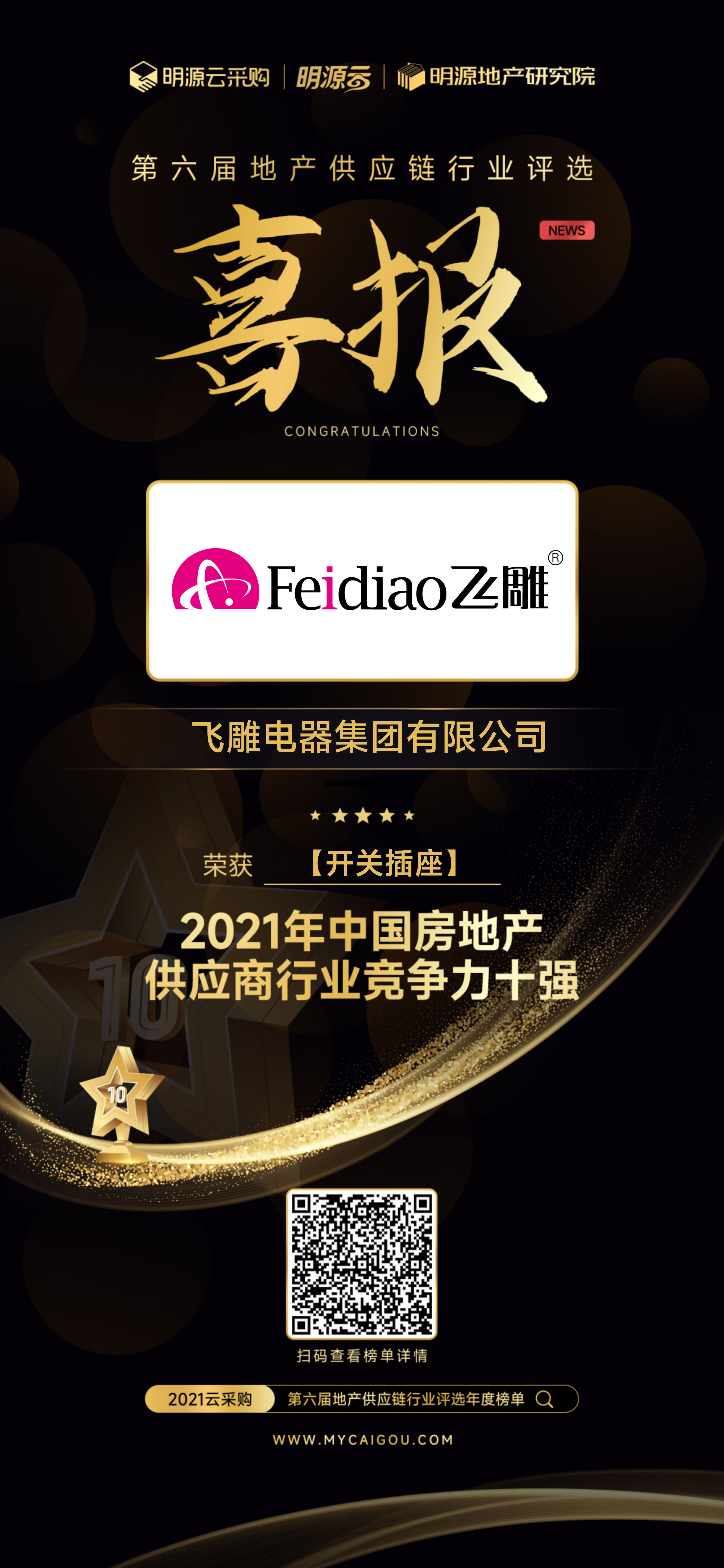 喜訊!飛雕電器集團榮獲2021中國房地產(chǎn)供應(yīng)商行業(yè)競爭力十強?。ㄩ_關(guān)插座)