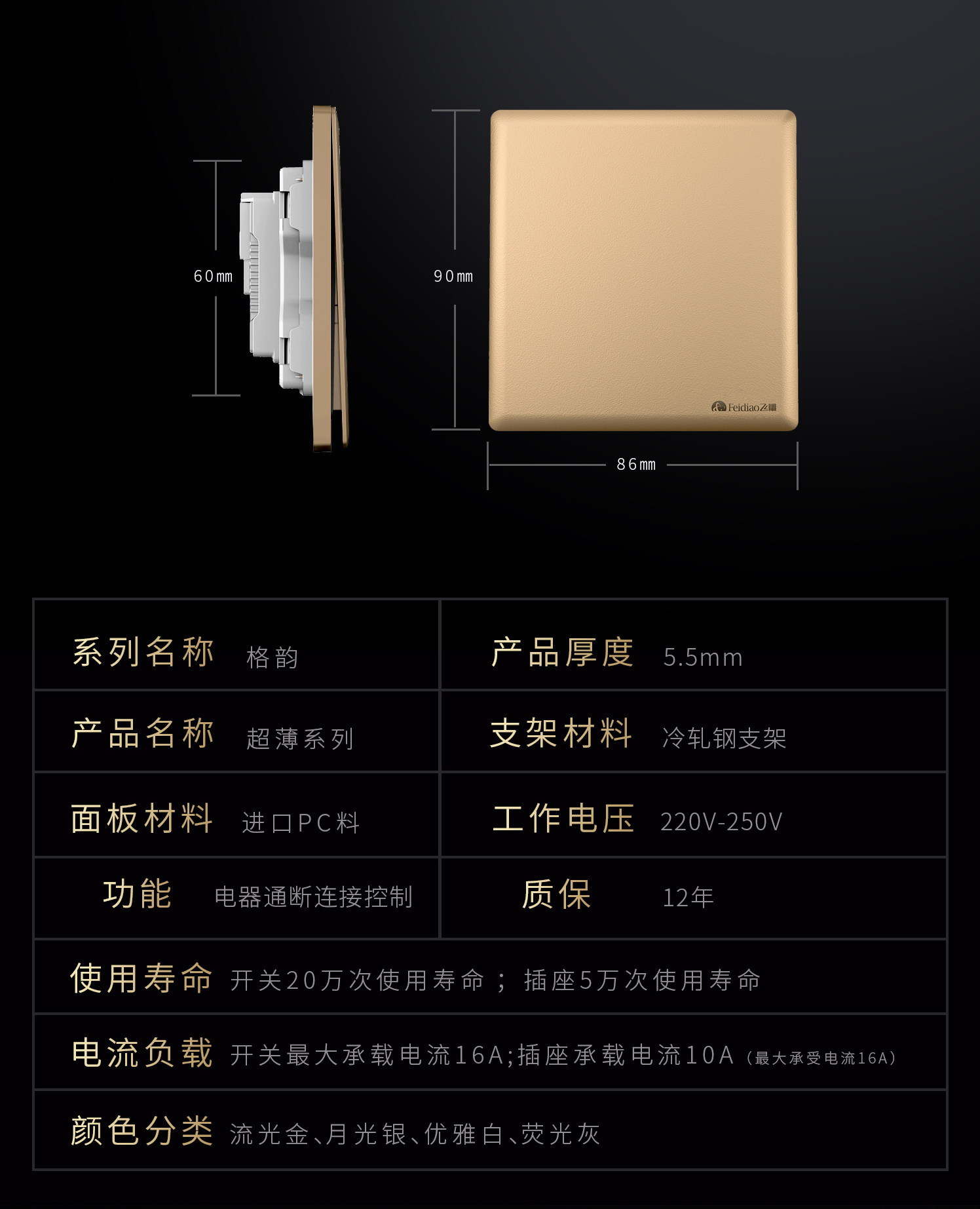 飛雕產(chǎn)品 開(kāi)關(guān)插座 開(kāi)關(guān)插座 格韻超薄·Air系列