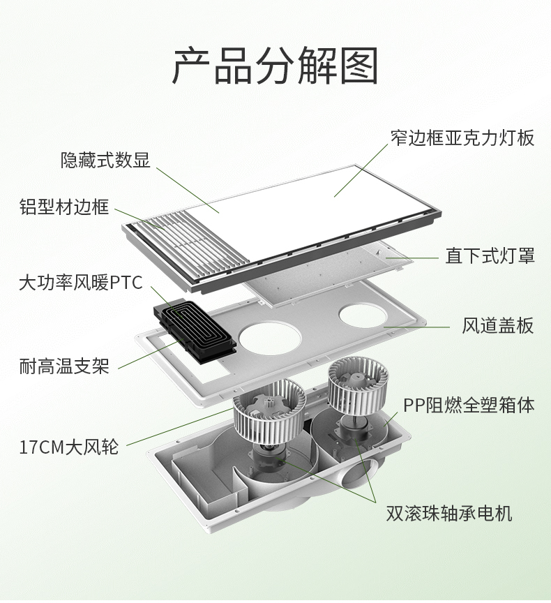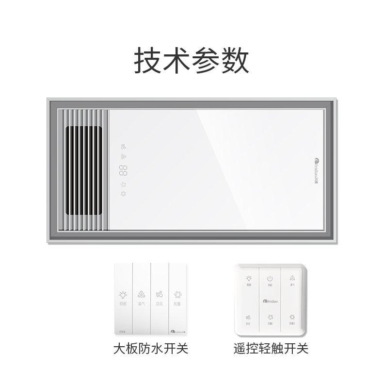 產(chǎn)品功能:照明/換氣/風暖/吹風/數(shù)碼顯示/無線遙控/負離子凈化