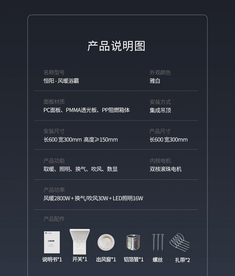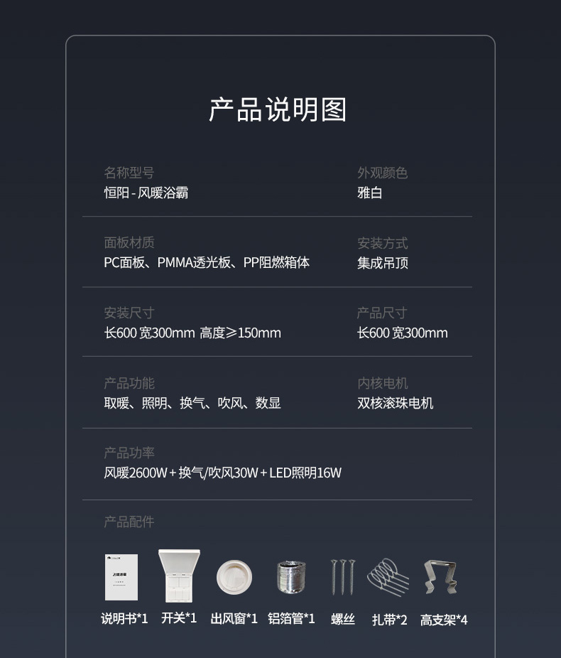 產(chǎn)品功能:取暖/照明/換氣/吹風(fēng)/數(shù)顯